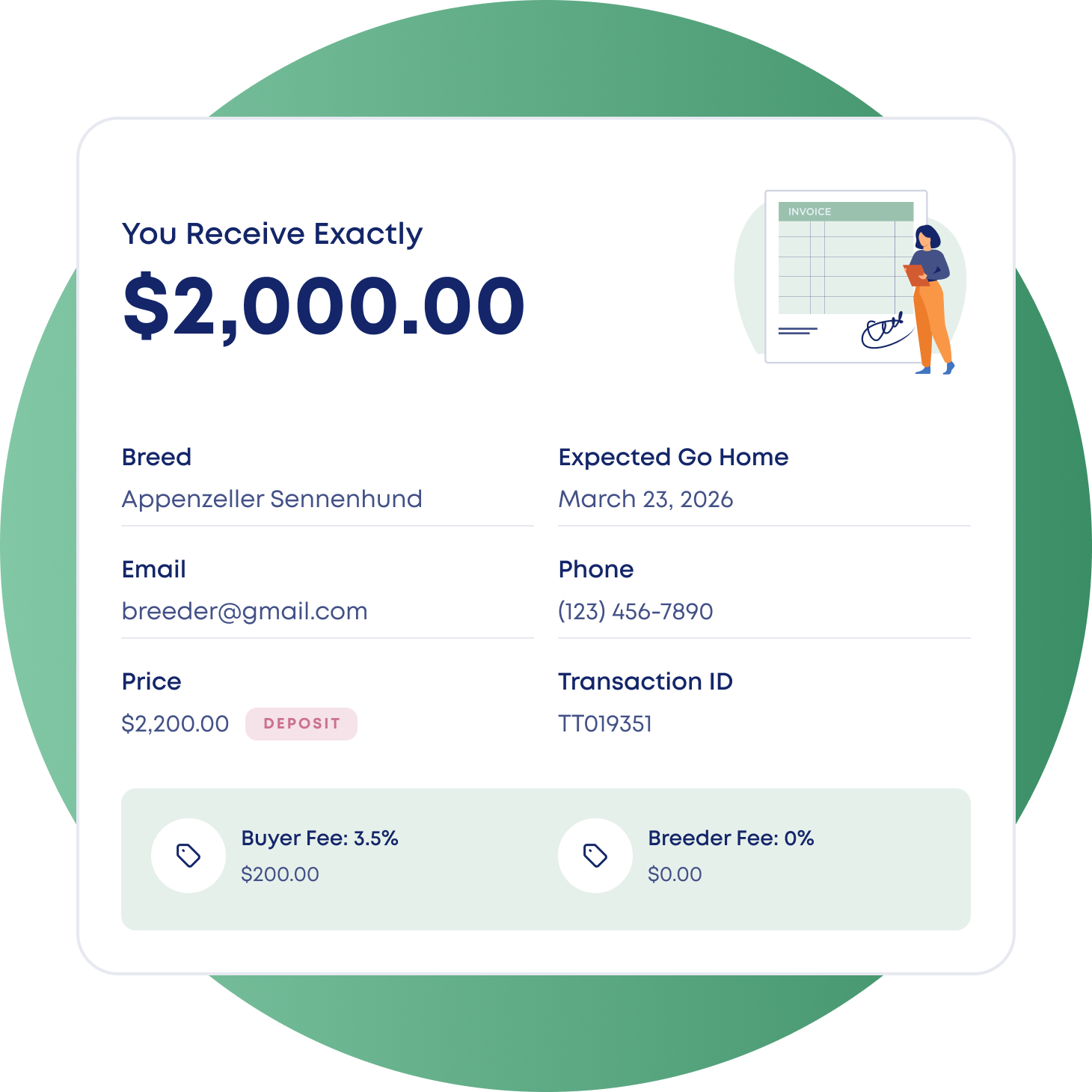 Collect deposits and final payments through a platform built for breeders — no surprise holds.